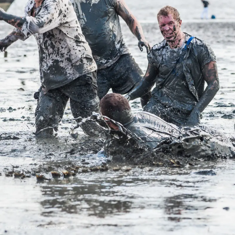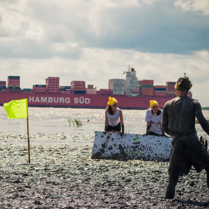 Matsch macht glücklich? Kann sein, wenn man sich die Wattlethen so anschaut. Aufgenommen auf mehreren Wattolümpiaden in Brunsbüttel.